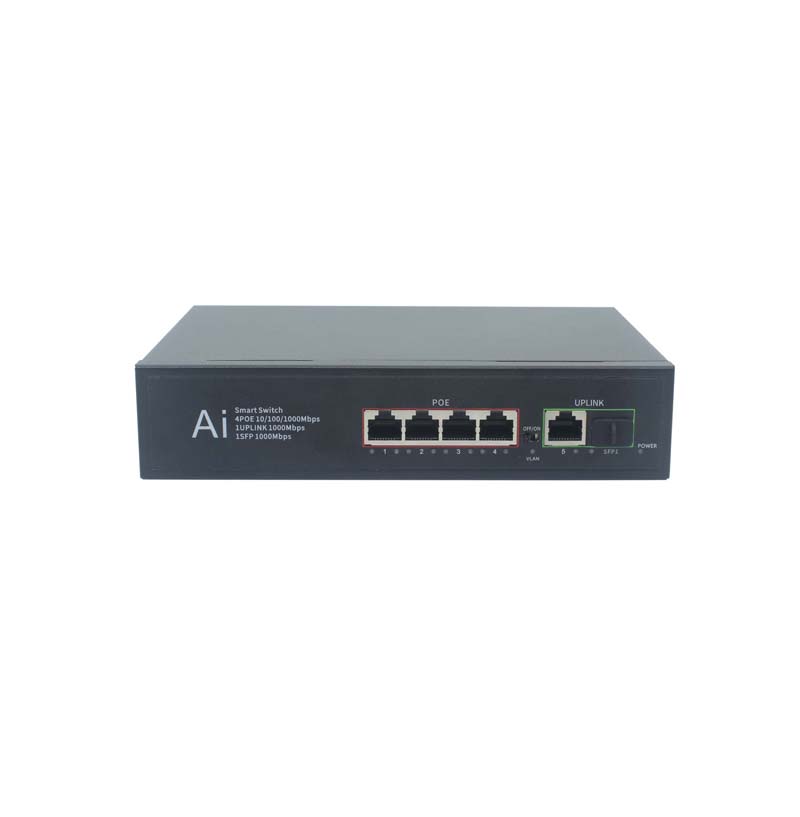 ◆ 4個10/100/1000Base-TPoE電口,1個10/100/1000Base-T上聯電口和1個千兆SFP上聯光口;